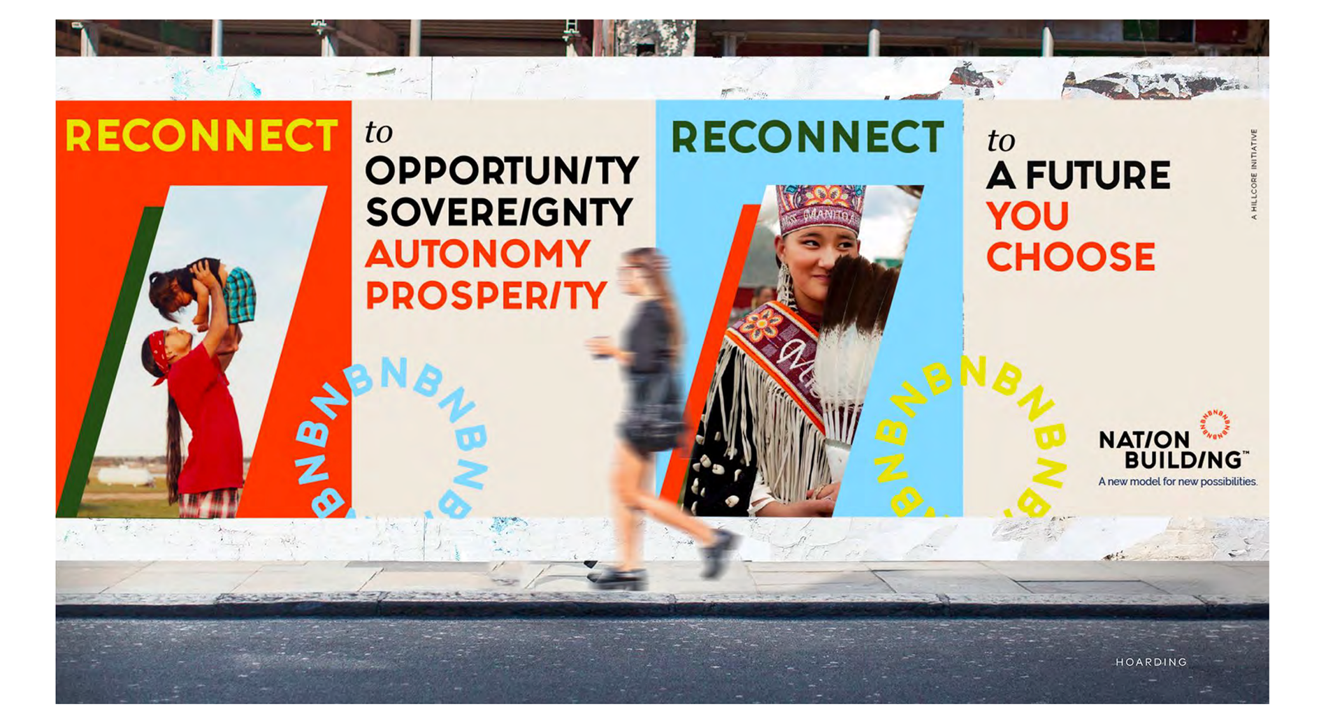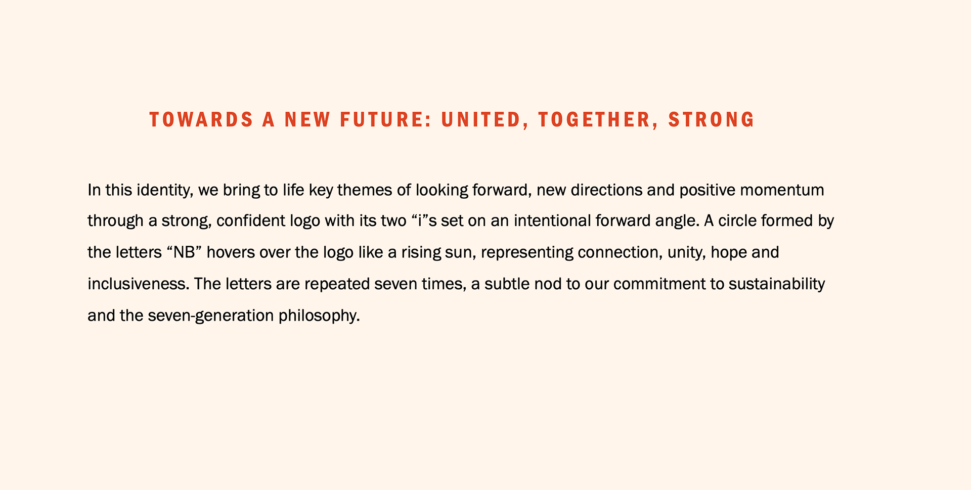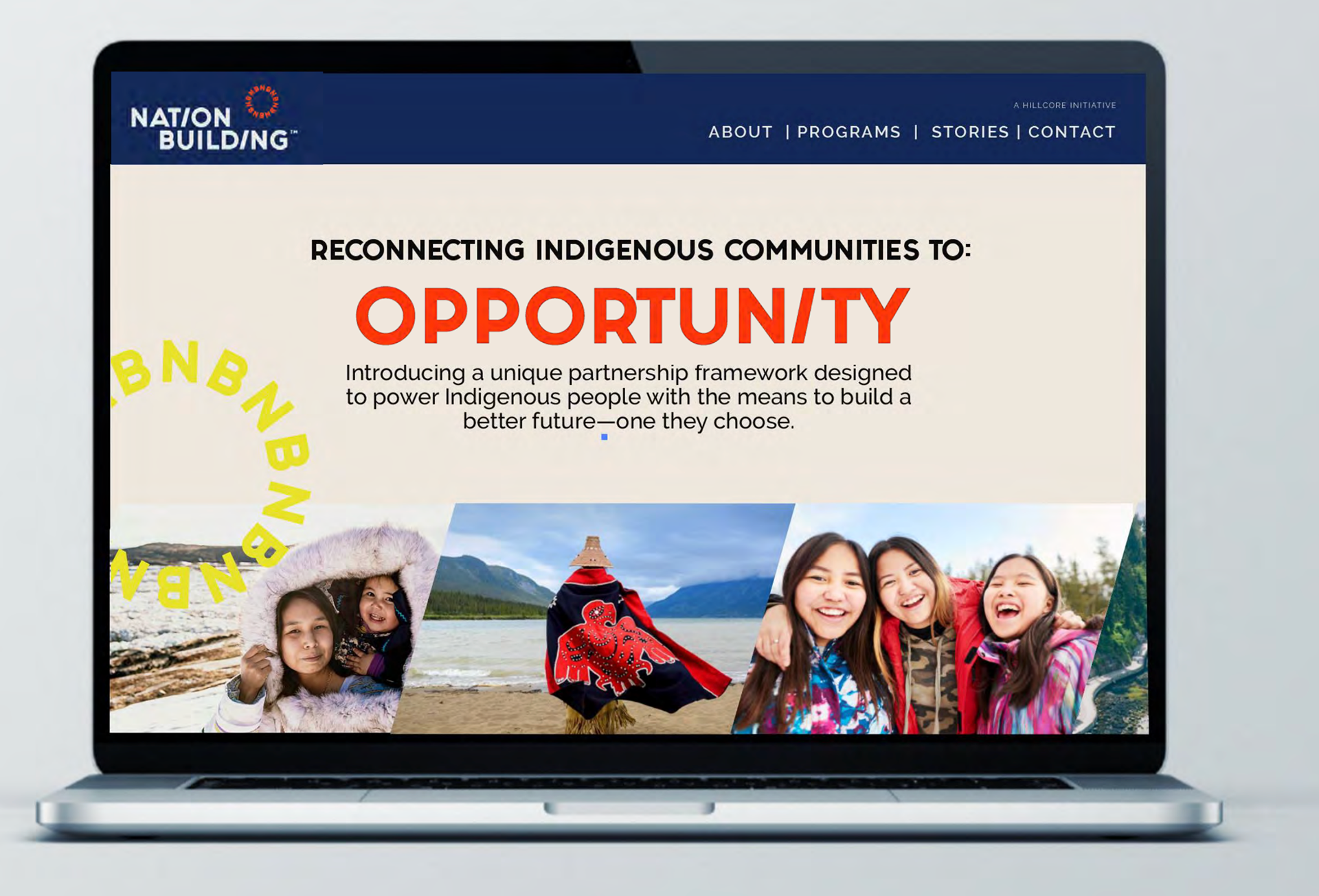 Seven is a sacred number in many Indigenous Nations and represents the seven generations. As are circles which represent community. We used the NB (for Nation Building) and repeated it seven times within the logo to show that connection to the culture.